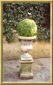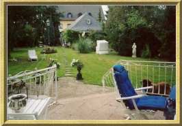 umgeben von einer hohen Hecke |